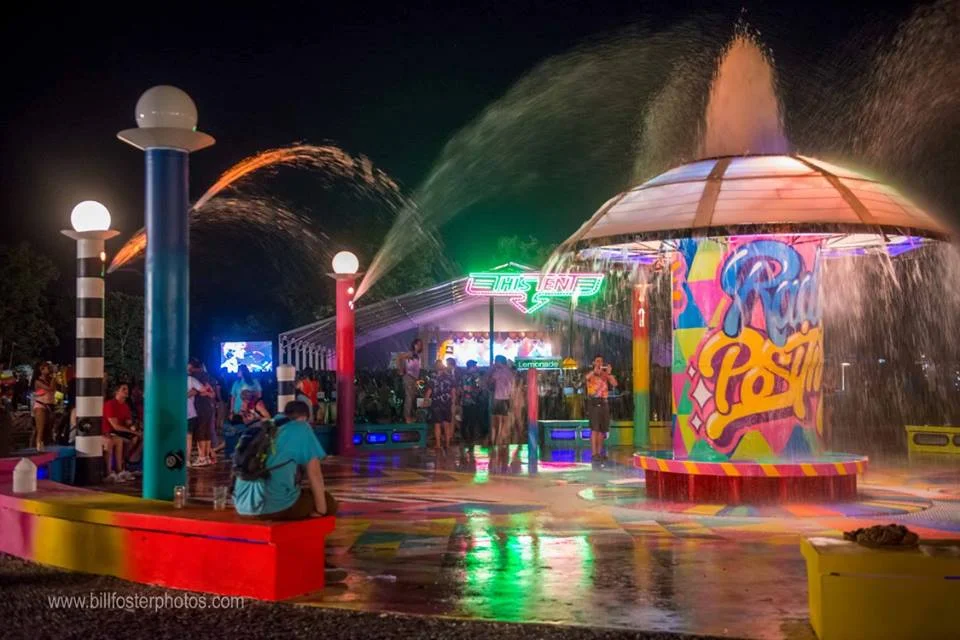 The Bonnaroo Fountain reminding every buddy to Radiate Positivity, at Bonnaroo 2015, photograph by Bill Foster