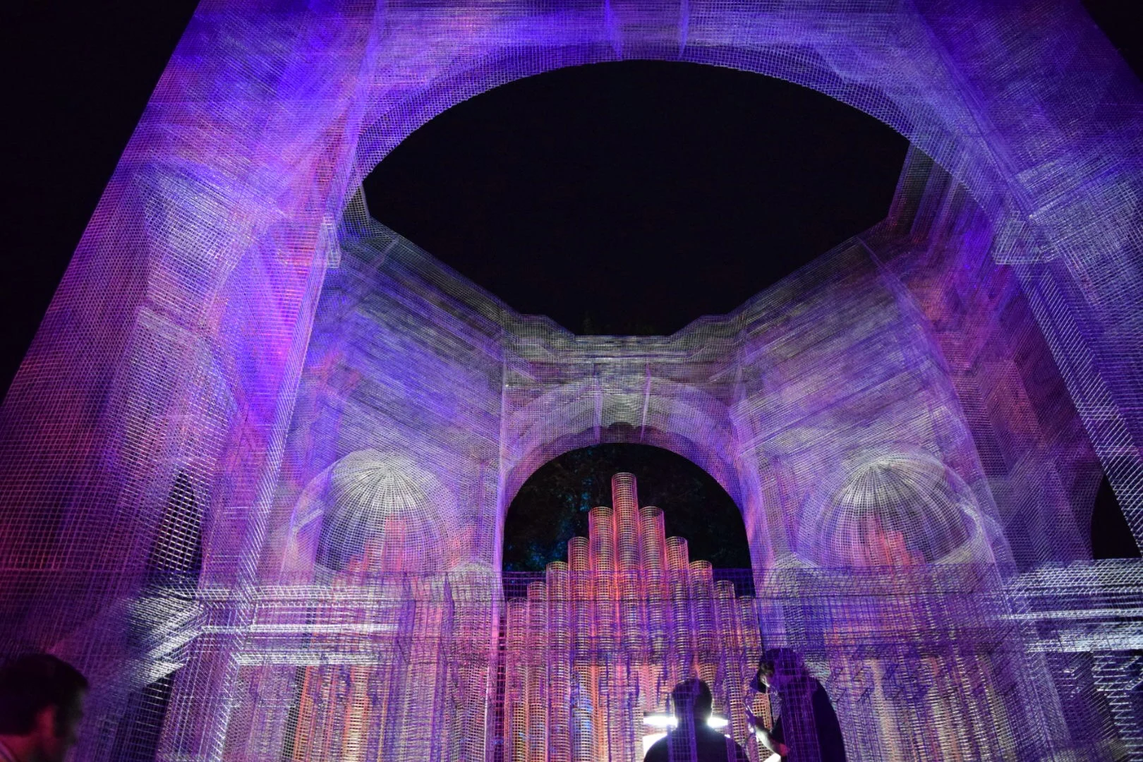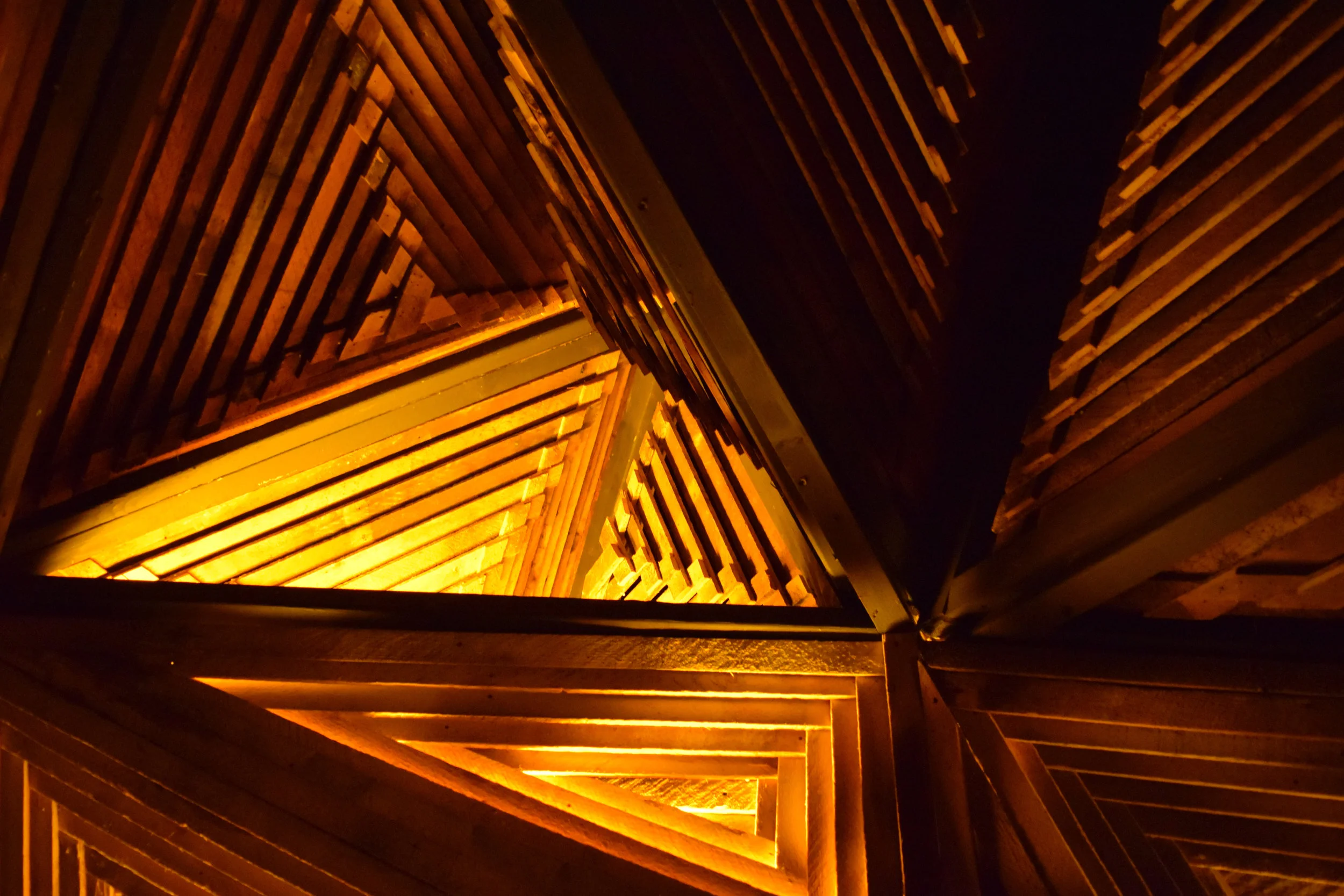 The festival orb constructed from pyramid-shaped pieces at Eaux Claires 2016, photograph by Anmol Gupta